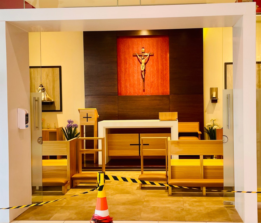 And in a Catholic country, every airport needs a little chapel (crews were working nearby, hence the cone).