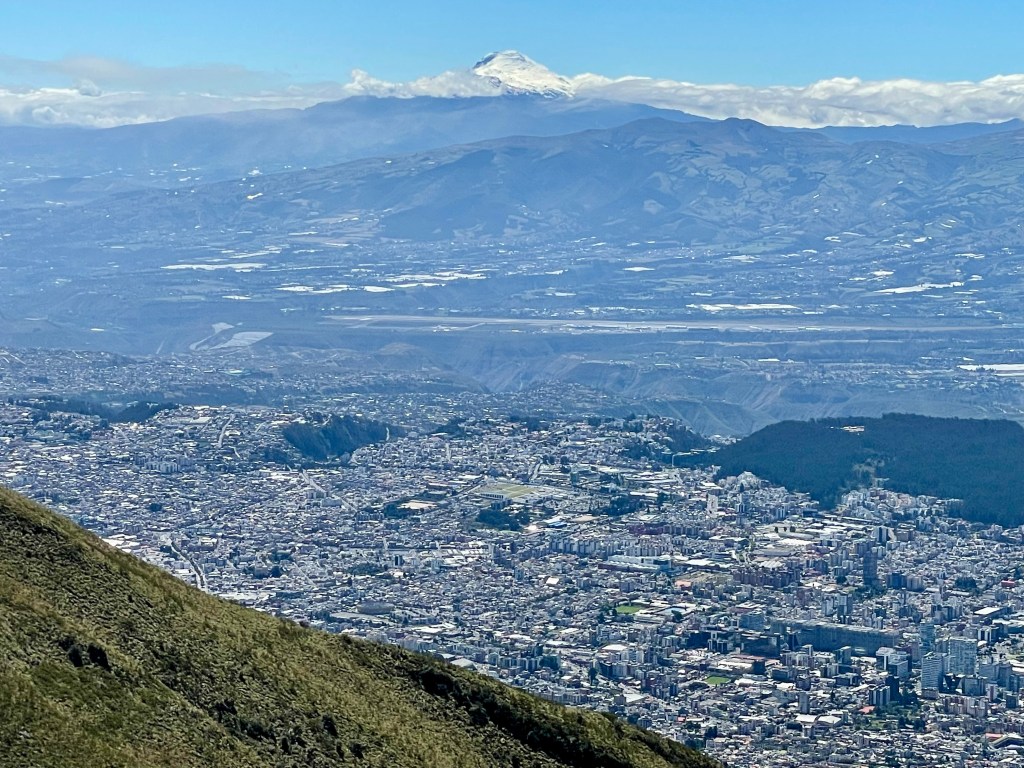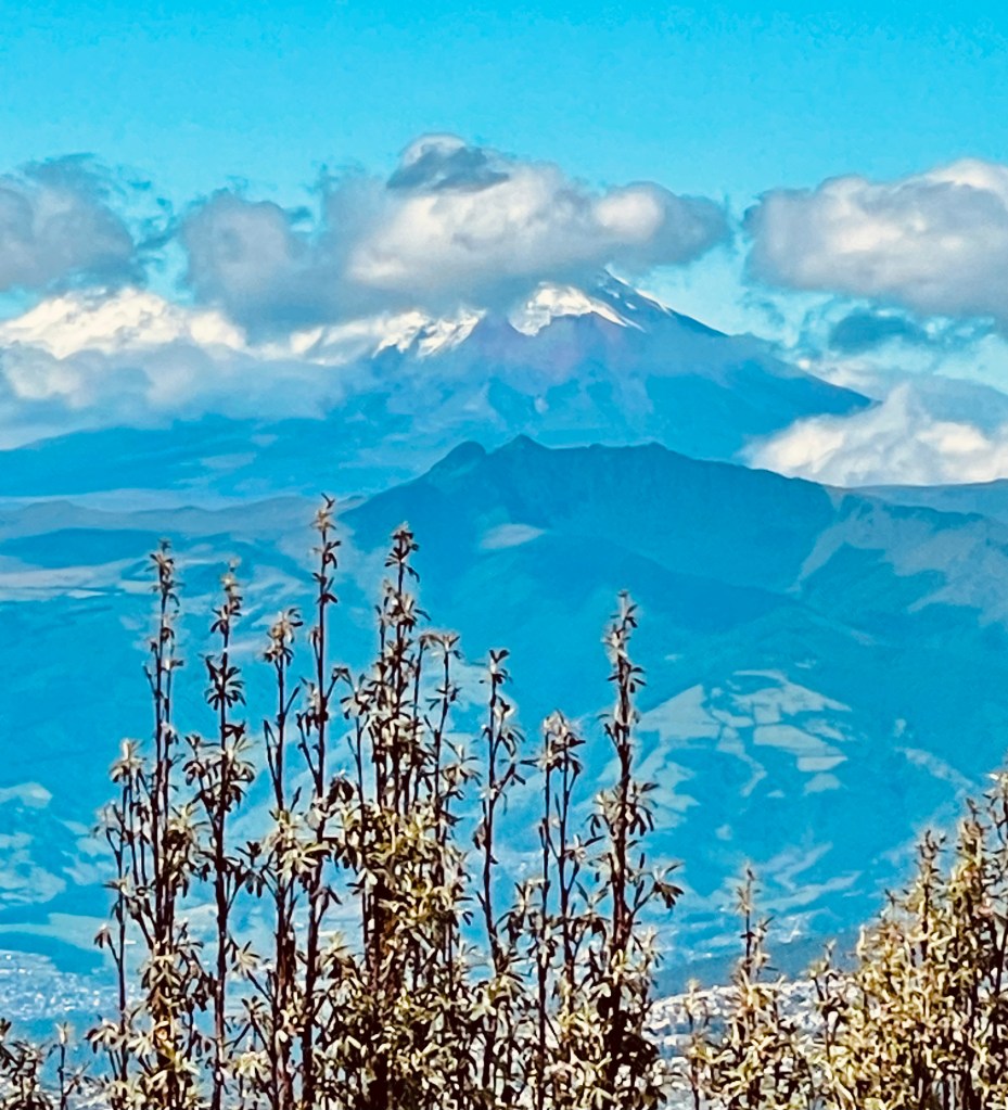 The ride took us to the top of Pinchincha volcano. The 15 minute ride is very steep and must equal the Palm Springs, California tram for steepness. From the top the city unfolds before you. Visible is Cayambe volcano (15,000 feet) as well as the massive Cotapaxi which rises more than 19,00 feet. We got there just as the tram opened at 10 AM so there wasn’t much of a crowd. We were advised to go early as the skies are likely to be less cloudy and the winds more moderate.
