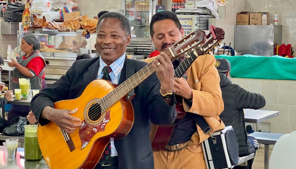 The cafeteria was a lively place offering lots of local delights and sporting roving musicians and happy customers. Ecuador also has a couple of dozen different varieties of potatoes.