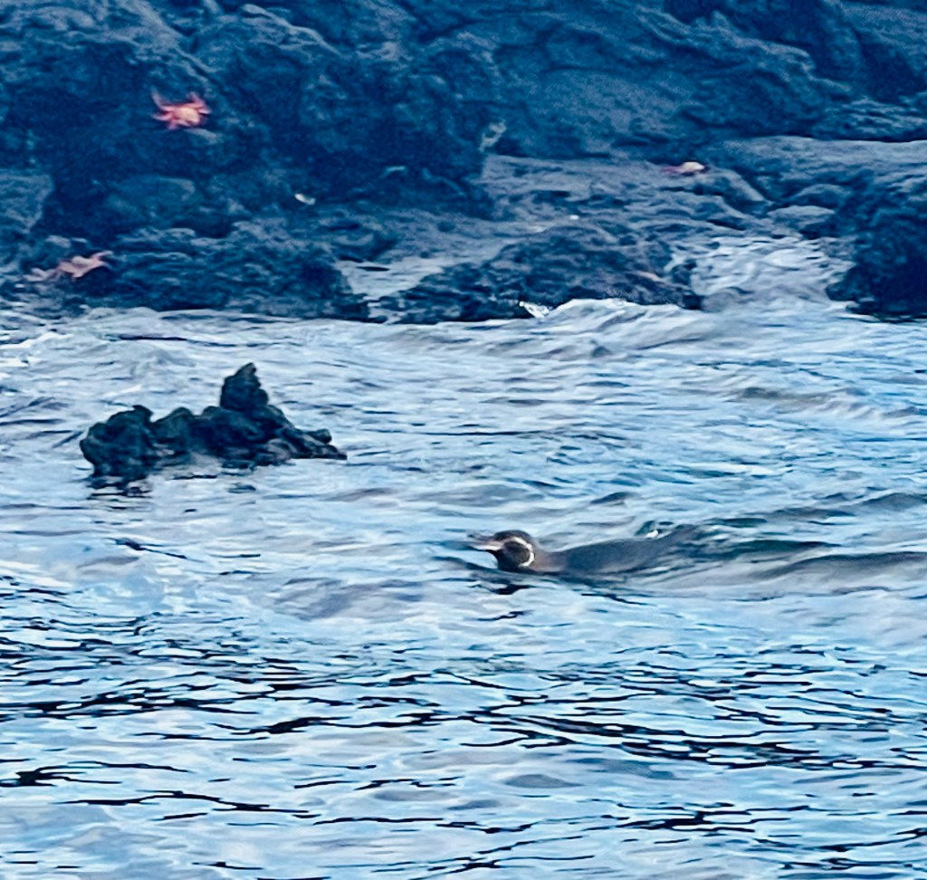 We did see a rare site. Penguins sat on the shore and swam by our panga in the northern hemisphere. Galapogos penguins are the only penguins north of the equator. We saw so many other creatures and landforms that I cannot include them all.