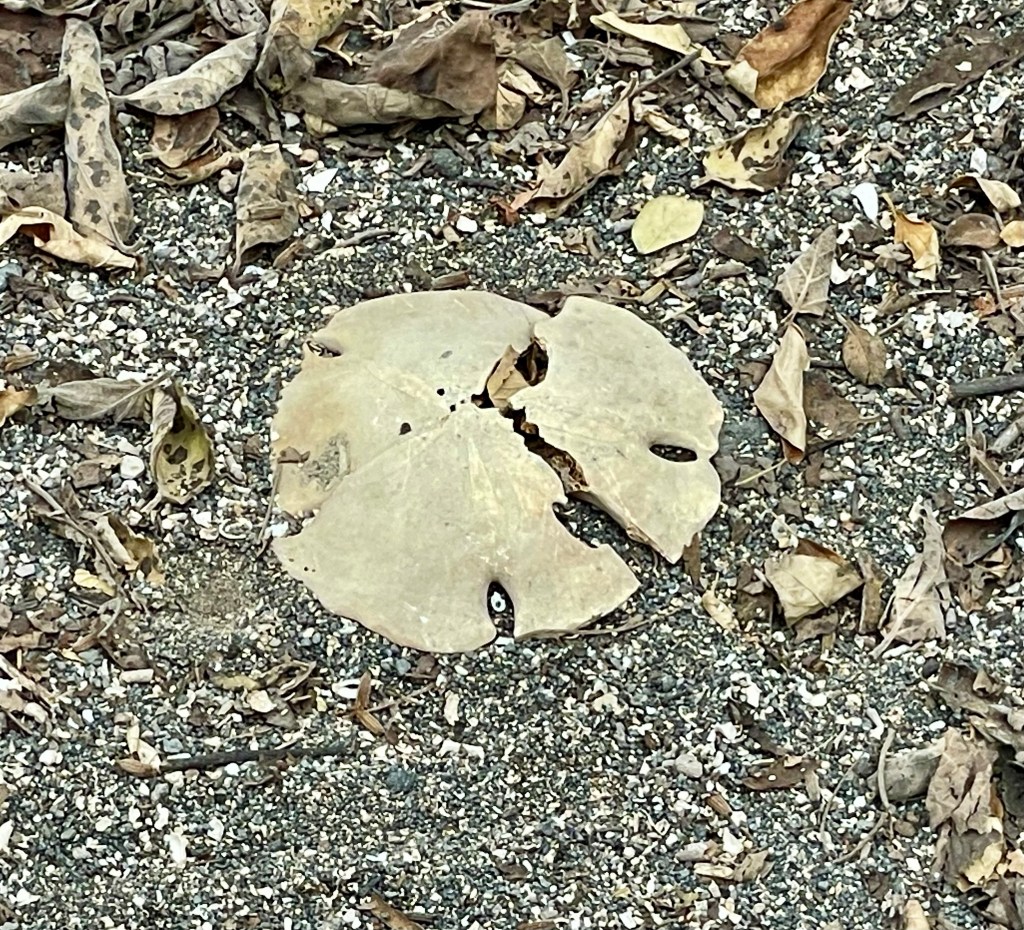 This sand dollar was once on the ocean floor – and not too long ago. There have been many up swellings on the islands. The ground can literally be pushed up 5 to 15 feet in a few minutes by molten forces underground.
