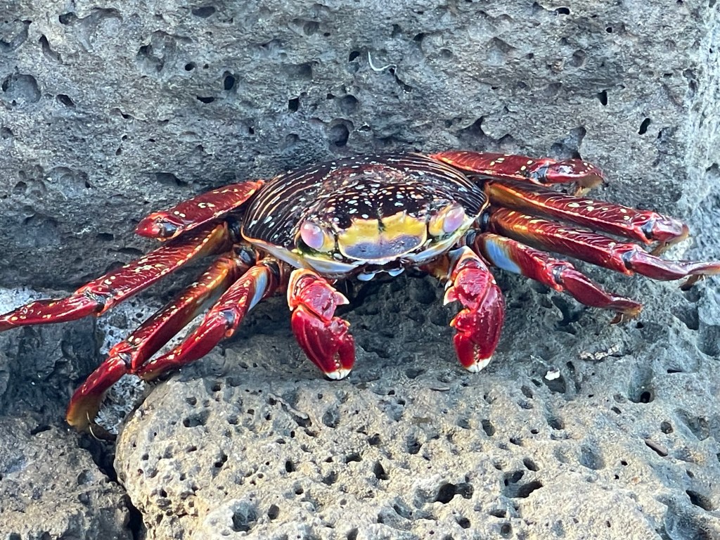 A sally lightfoot crab. They are supposedly quick, but I saw no evidence of this.